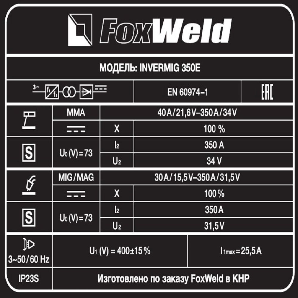 Сварочные инверторы MIG-MAG Fox Weld INVERMIG 350E: характеристики