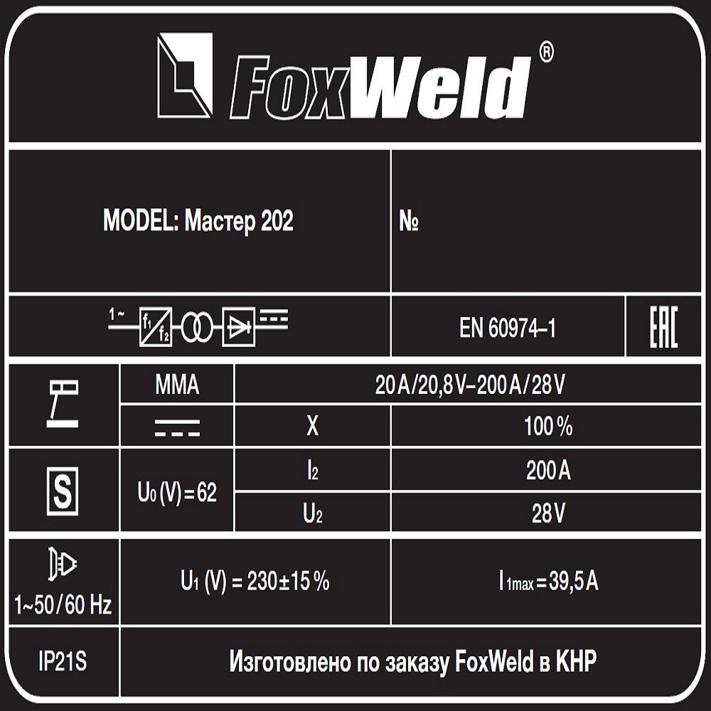 Сварочный инвертор MMA Fox Weld Мастер 202 с аттестацией НАКС: характеристики